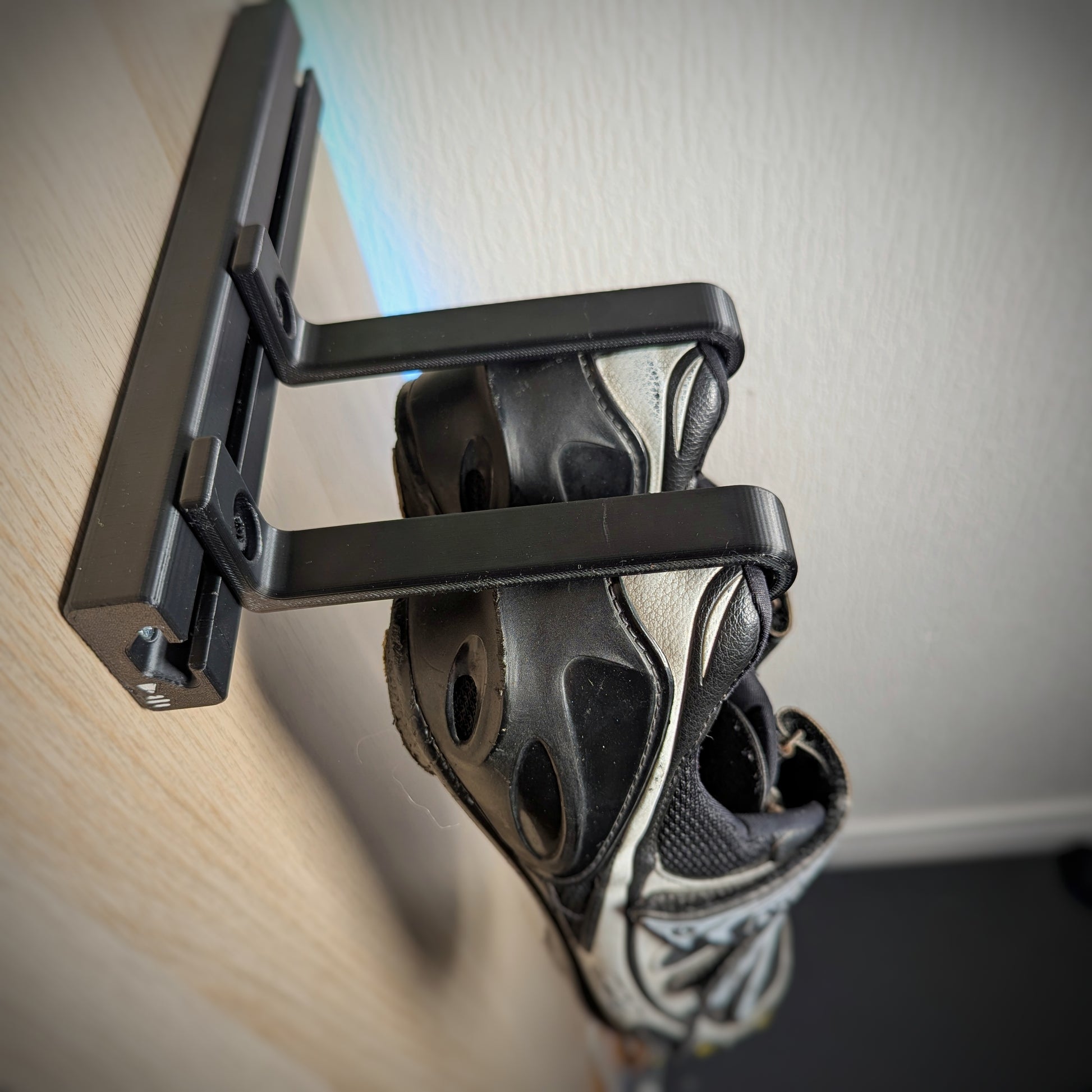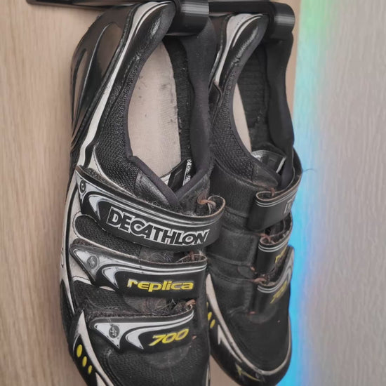 Ce support de rangement pour chaussures de vélo a été conçu pour les cyclistes qui veulent allier praticité, propreté et esthétique. Que vous rouliez en vélo route, gravel ou VTT, ce support est la solution idéale pour garder vos chaussures accessibles, bien rangées et à l’abri des chocs.