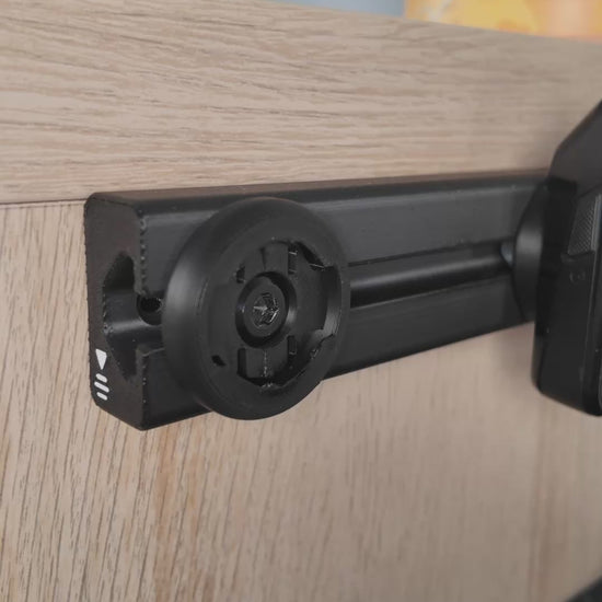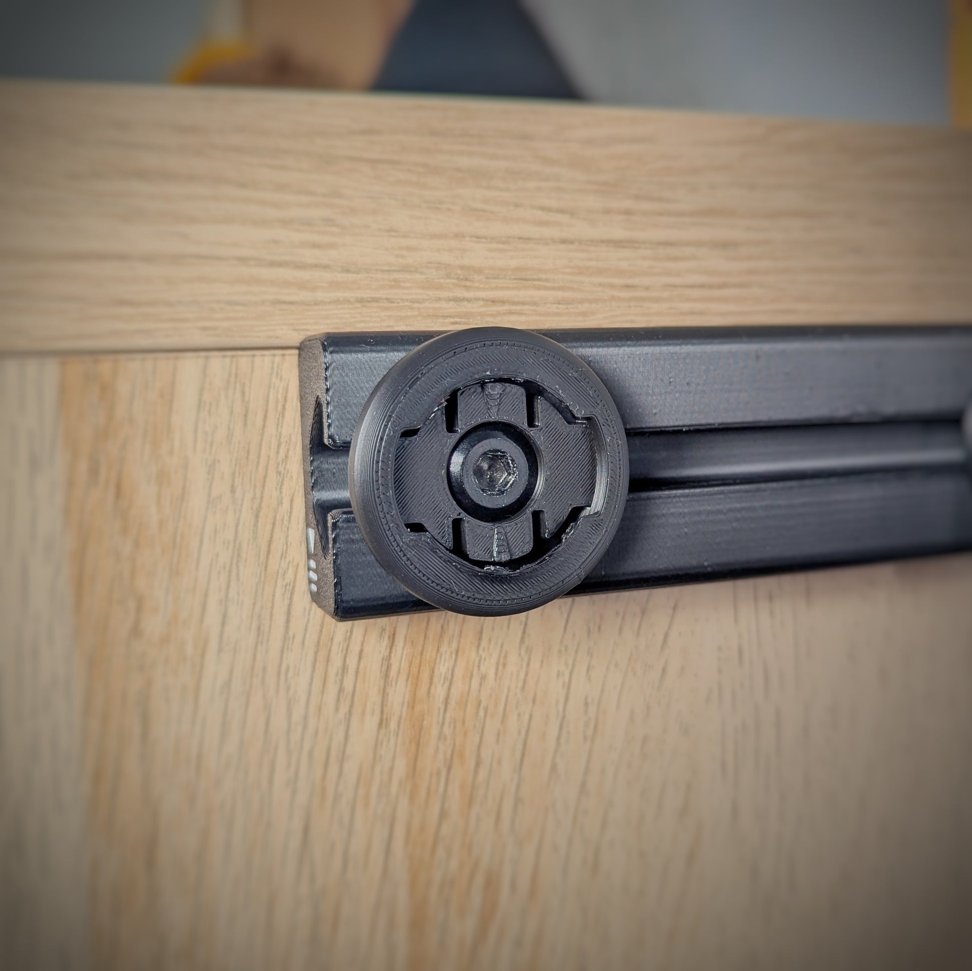 Fixé sur une barre modulaire XavLab ou un profilé aluminium rainure 8 mm, ce support te permet de ranger tous tes appareils compatibles mount Garmin quart de tour, au même endroit.